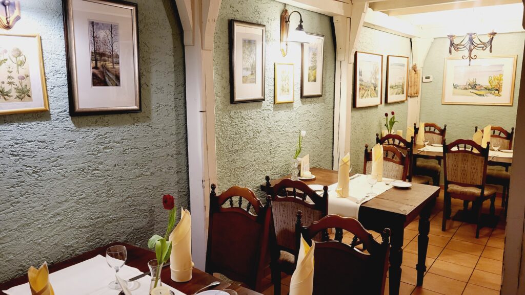 Wir laden Sie herzlich ein zu einer traditionellen und farbenfrohen Reise in unser charmantes Restaurant. Freuen Sie sich auf ein uriges Küchenbuffet, fröhliche Gemälde und liebevoll ausgewählte Möbel – ganz wie aus Großmutters guter Stube. In gemütlicher Atmosphäre mit rund 40 Sitzplätzen können Sie genießen, entspannen und sich ein Stück zuhause fühlen.