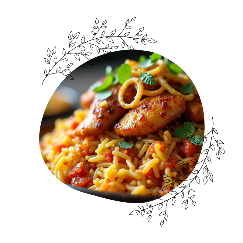Dazu aromatischer gelber Reis.